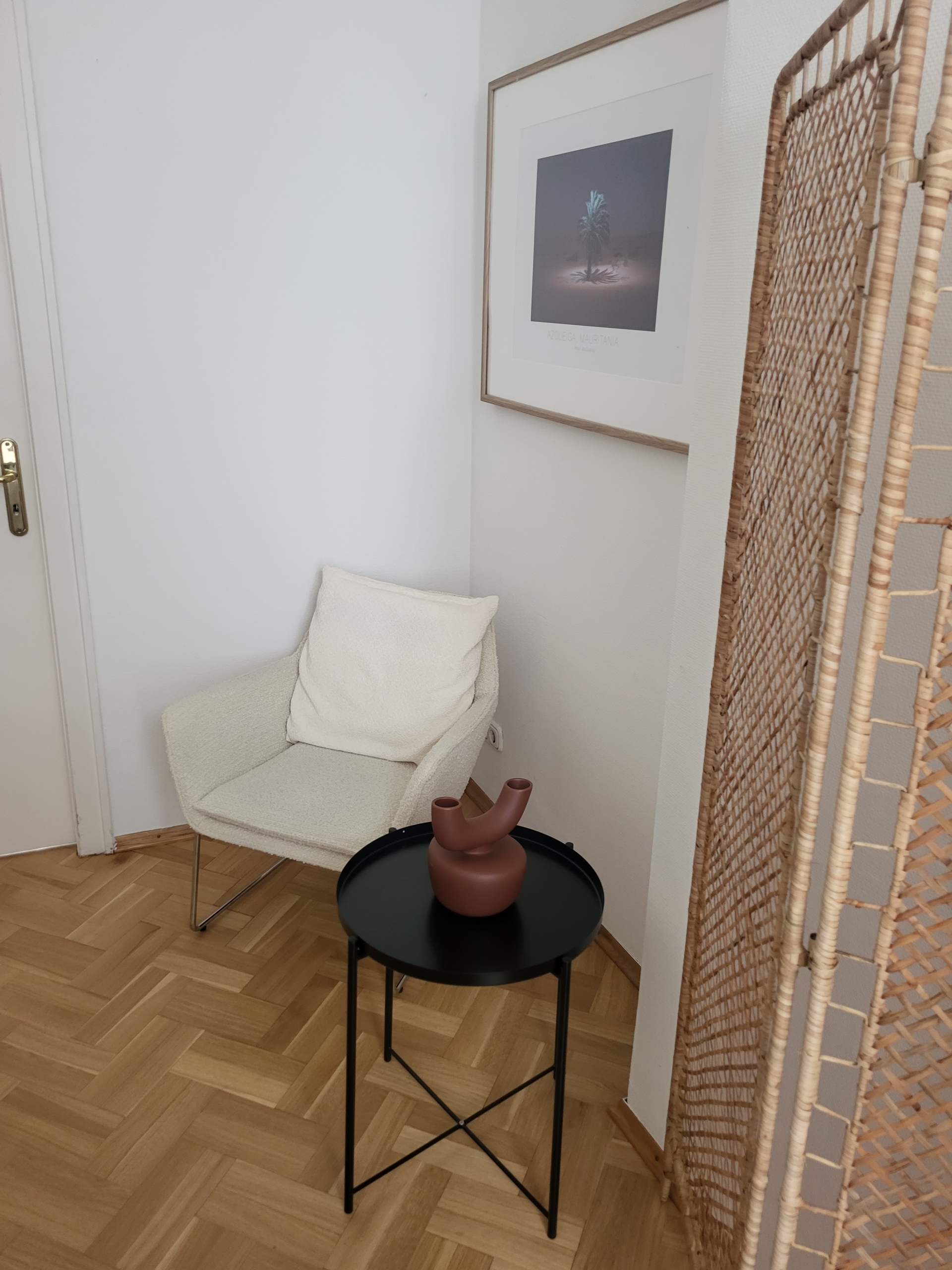 Ab 1.10. wird für 2 bis 4 Tage die Woche ein Praxisraum in meiner Praxis zur Mitnutzung frei. Er kostet 210 Euro je Tag pro Monat. Das heißt, wenn ihr ihn z.B. immer Montag und Dienstag nutzen möchtet, zahlt ihr 420 Euro im Monat, bei einem weiteren Wochentag 640 Euro usw.