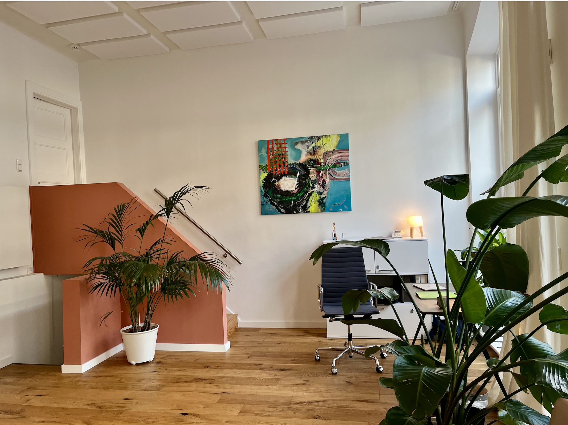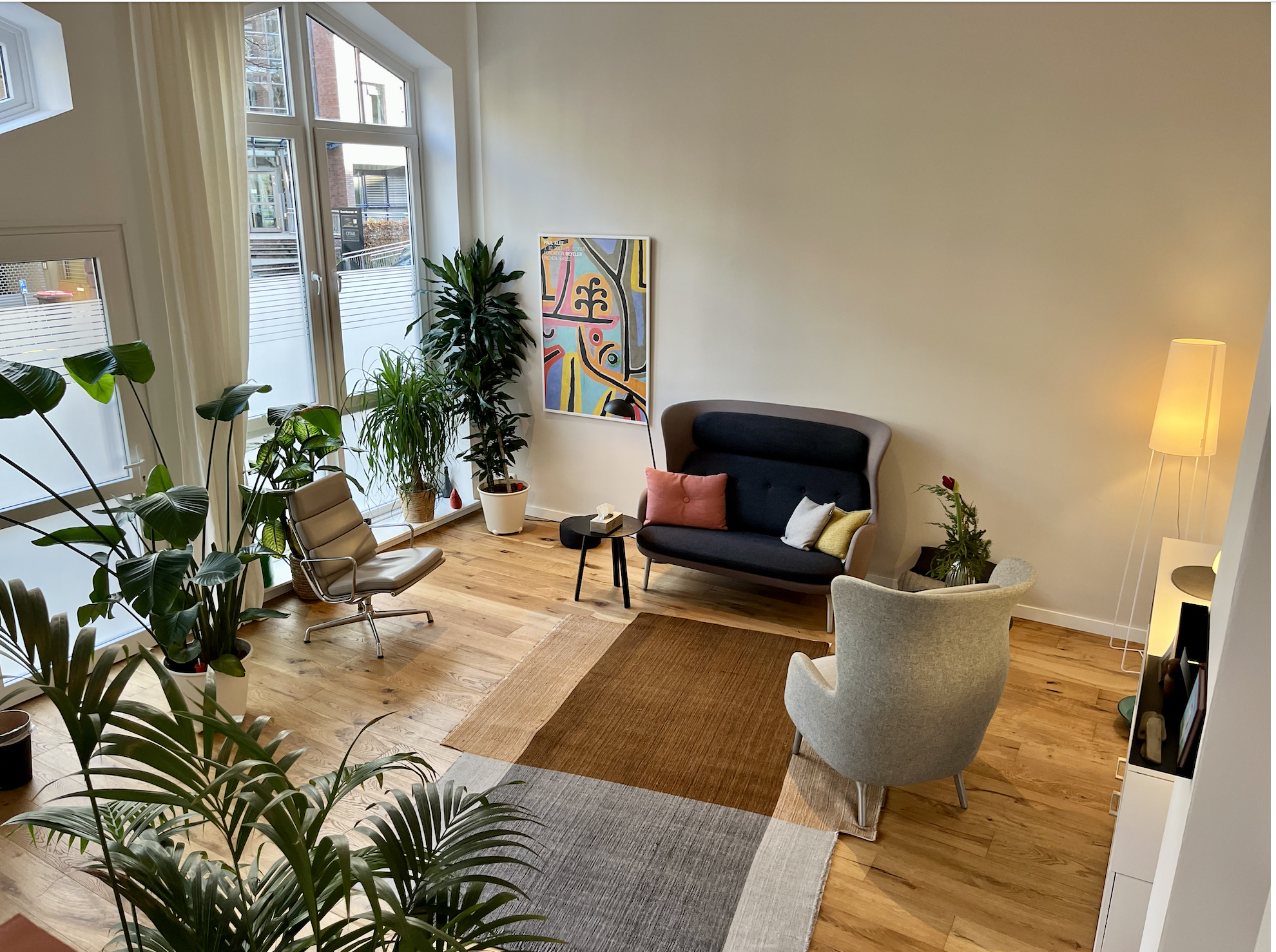 Der Raum ist hochwertig möbliert und sehr gemütlich. Die Praxis hat eine voll eingerichtete Küche, WC und einen kleinen Wartebereich. Der Raum eignet sich für Einzeltherapie, Coaching und Paartherapie.